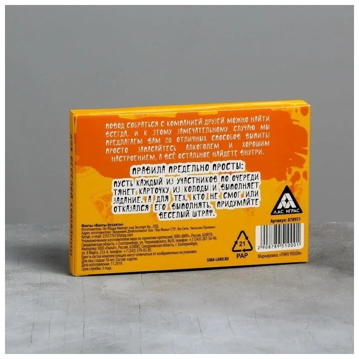 Купить игра для компании "фанты буханты" 20 карт от 100 руб. с доставкой до пункта выдачи в Кондрово. Интернет магазин ДекаМаркет. Оплата при получении.
