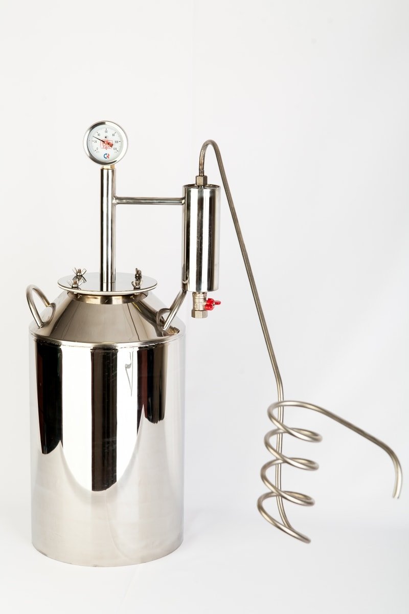 2) Самогонный аппарат с непроточным змеевиком для использования на даче и за городом.